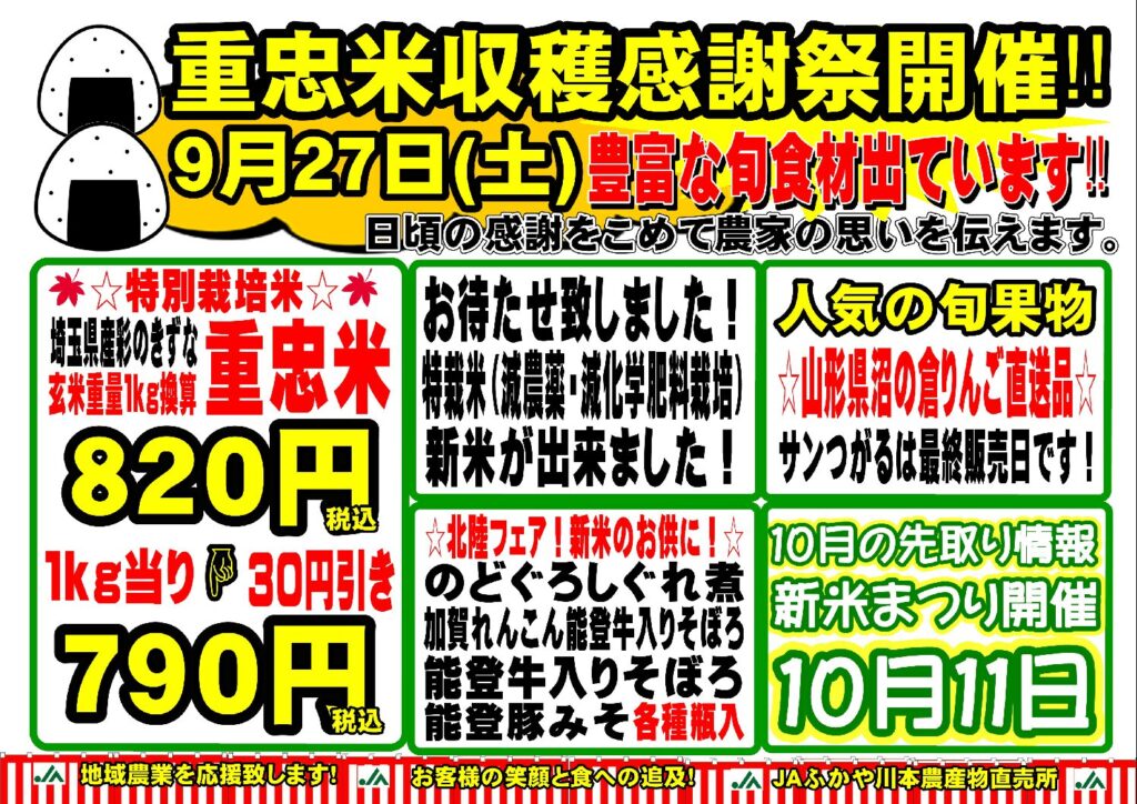 10月 | 新米まつり 川本産「重忠米」のPR試食販売有。 |