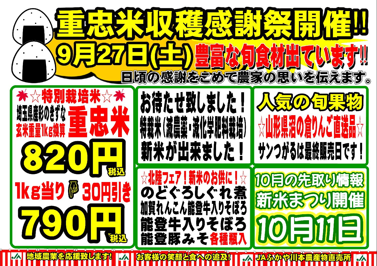 毎年恒例、「重忠米」の新米販売を開始致しました。