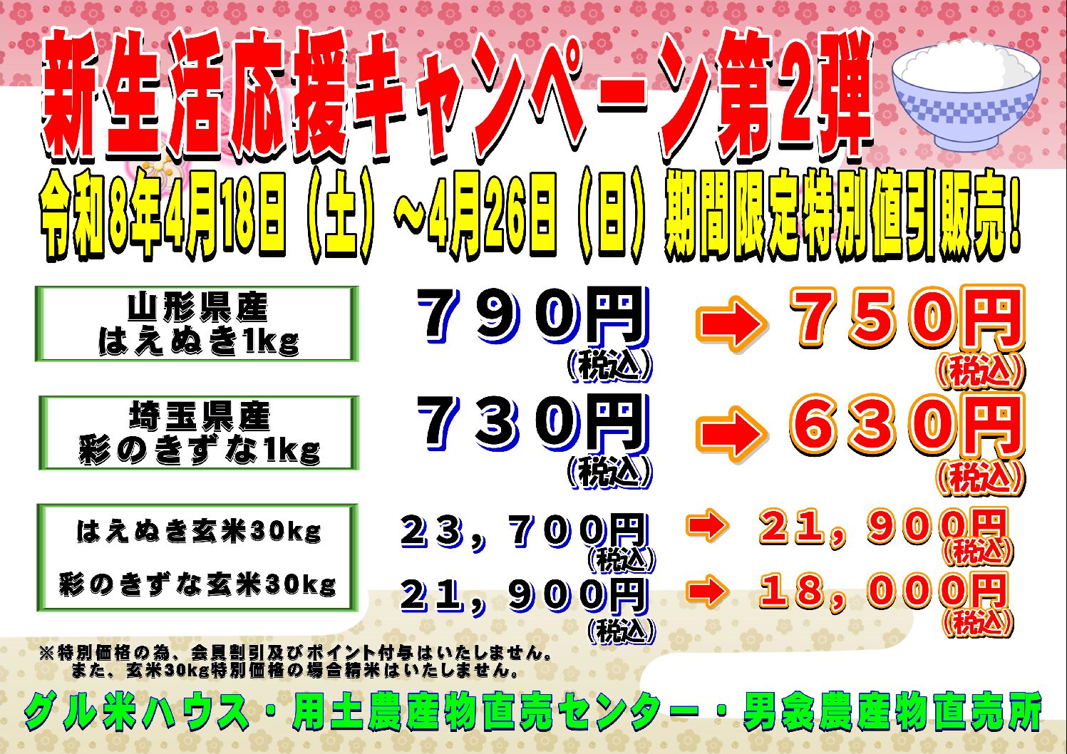 先月10月に開催した新米キャンペーン、その第2弾として今回も深谷管内産「彩のきずな」を特別価格で販売...