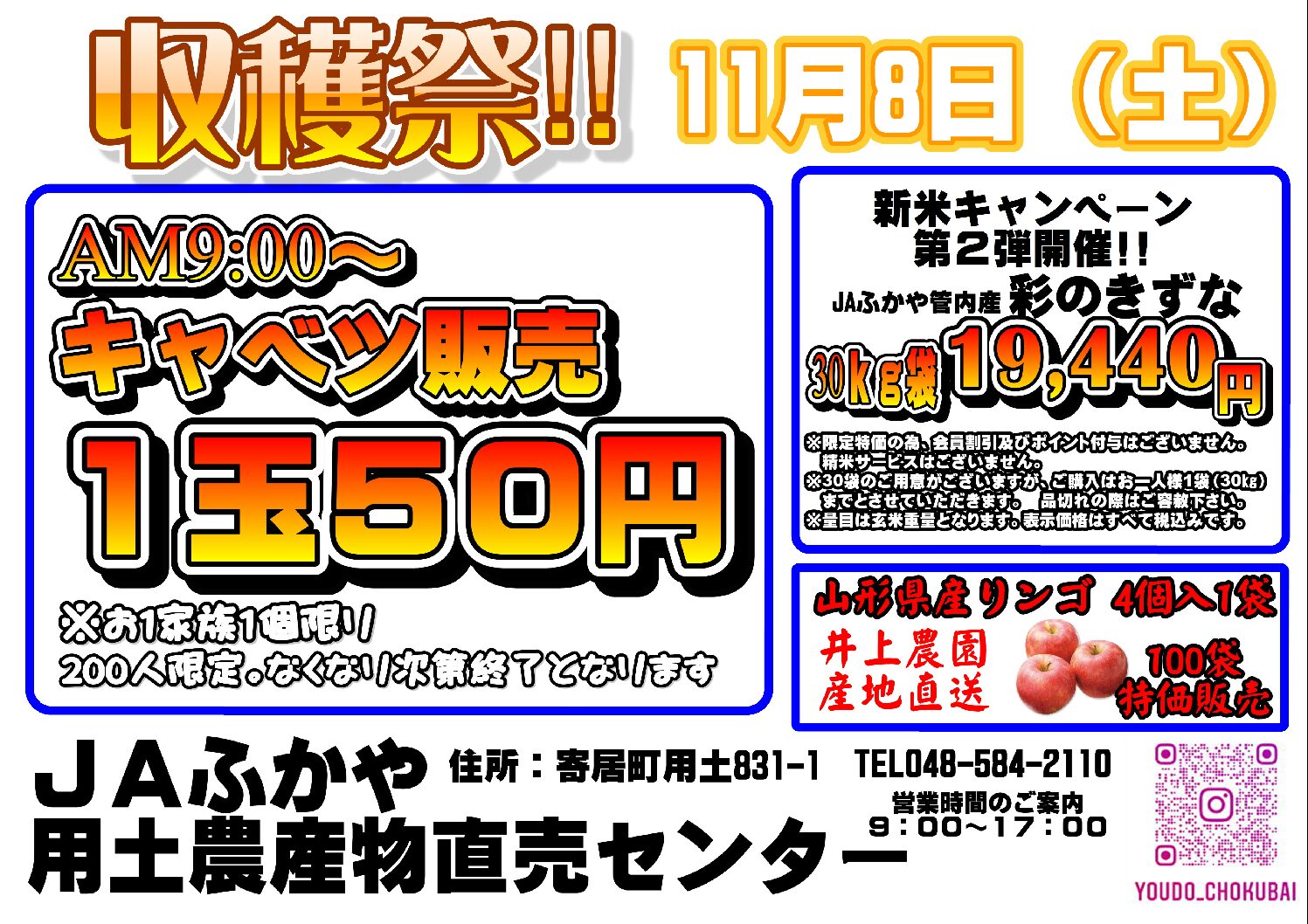 さらにキャベツを1玉50円の大特価販売いたします。